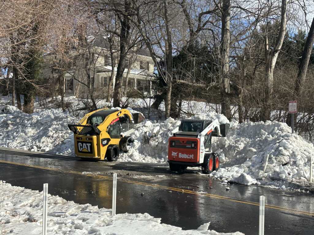 The snowcrete pile on Utah Avenue at Nebraska Avenue, NW. A fleet of Bobcats has been busy over the last few days pulling snow from nearby streets and creating this epic snowcrete mountain.