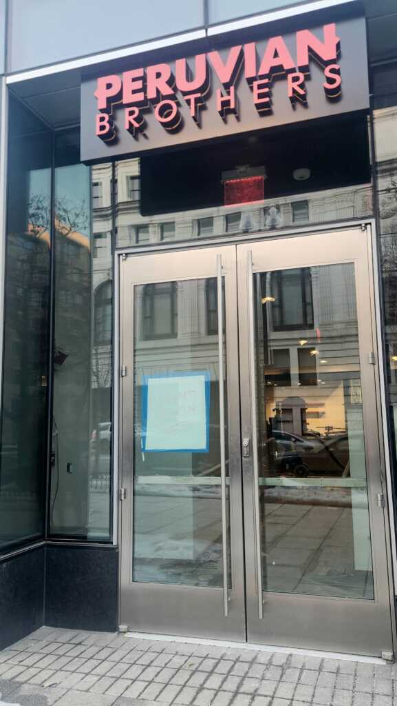 “Peruvian Brothers opening soon. Opening soon at 660 N Capitol on the corner of G St. This first floor space has been vacant since the building first opened over 8 years ago.”