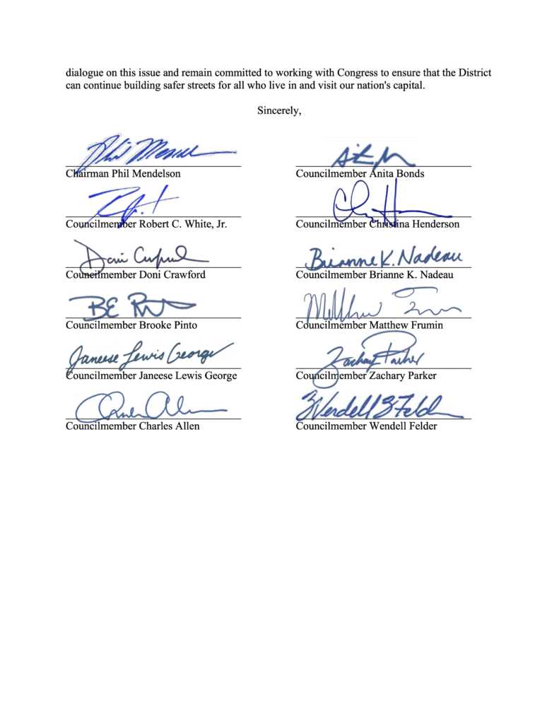 “D.C.’s elected officials enacted these measures to protect pedestrians, cyclists and drivers in our city. If D.C. residents disagree with those decisions, they can vote their local leaders out of office. That is how democracy works. What is undemocratic is members of Congress from distant states repeatedly trying to override local D.C. laws.