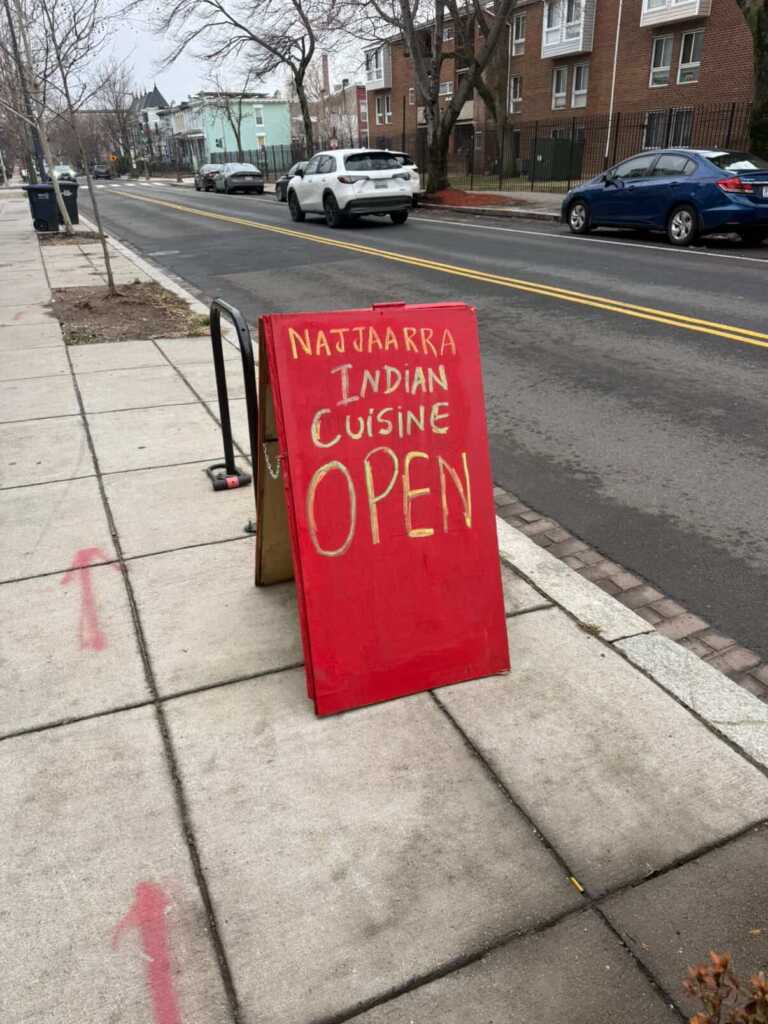 A new Indian restaurant, Najjaarra, opened in Bloomingdale! At 1625 1st St NW (didn’t there used to be another Indian restaurant there?) But it’s really great food! Family run (I believe same owners as the liquor store next door.)”