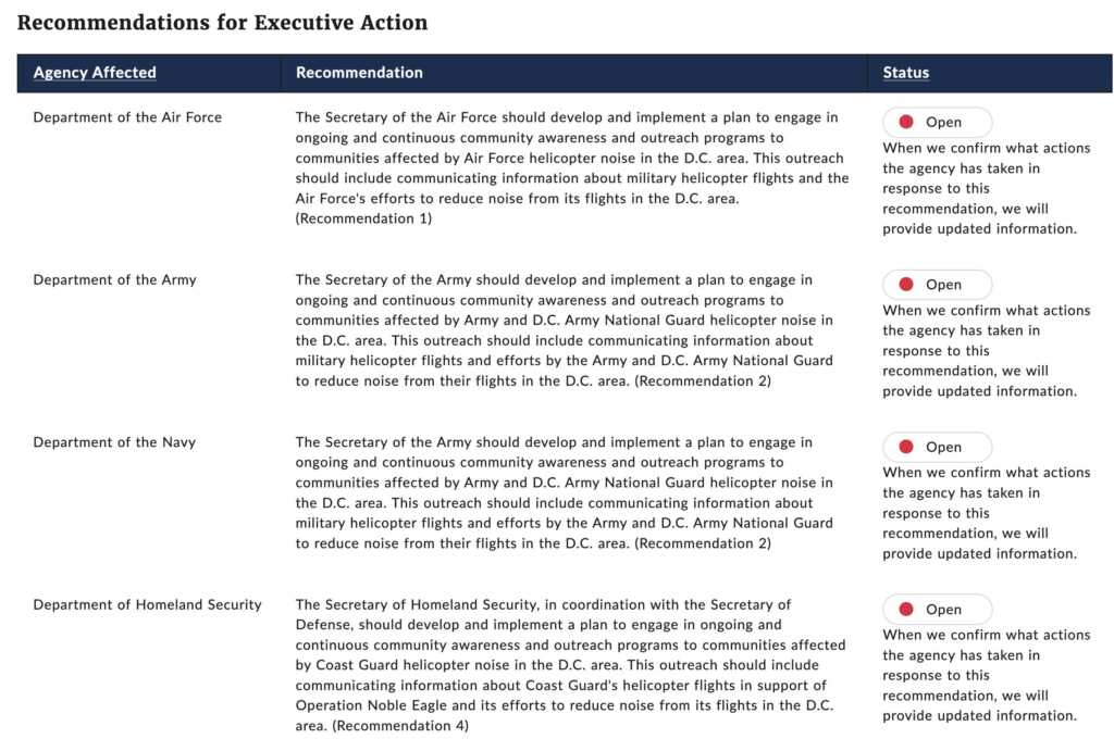 “Aircraft Noise: Military Helicopter Operators Should Improve Outreach to Affected Communities in the D.C. Area