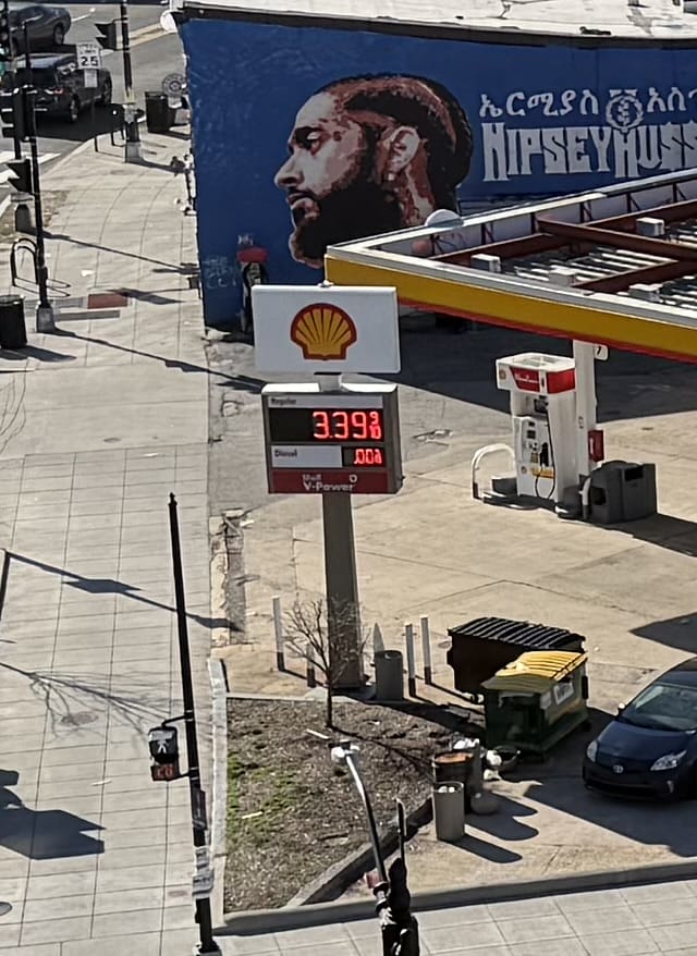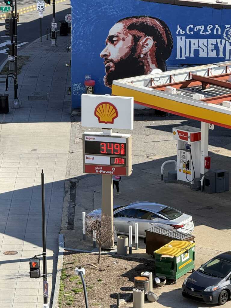 Thanks to Casey for sending: “10 cent increase in one day on Monday. Shell (former King) gas station at Florida and Vermont NW.”
