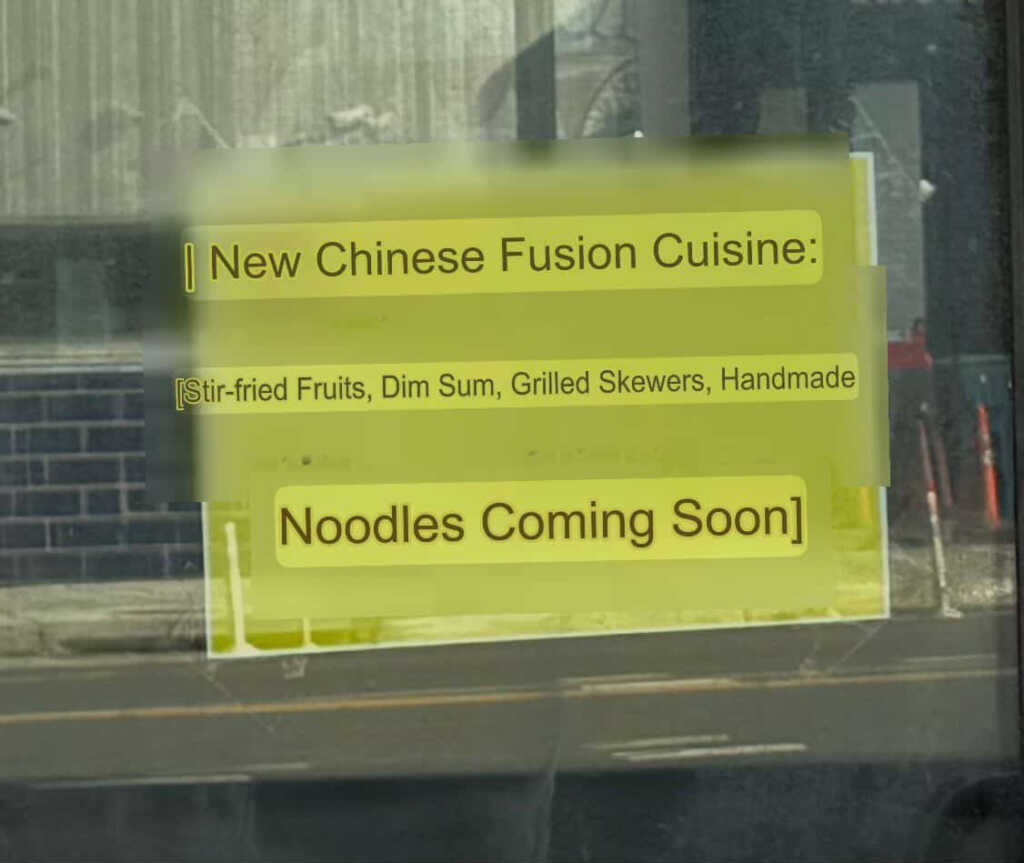 Thanks to Evan and Melody for sending: “Chinese food coming to Union Market. Google Translate of the Chinese text: