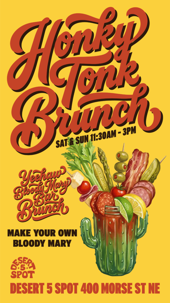 Because if there’s one universal truth, it’s that no two people take their Bloody Mary the same way, so Desert 5 Spot decided not to choose for you. Simply order a Bloody, and you’ll be handed a clean slate (no garnish, no rules) before heading over to the “Yeehaw Bloody Mary Bar,” where guests can build to their wildest specifications. Think of it as a buffet of garnishes with zero limits. Pile it high, keep it simple, or go completely off the rails. No minimums, no restrictions, no judgment.