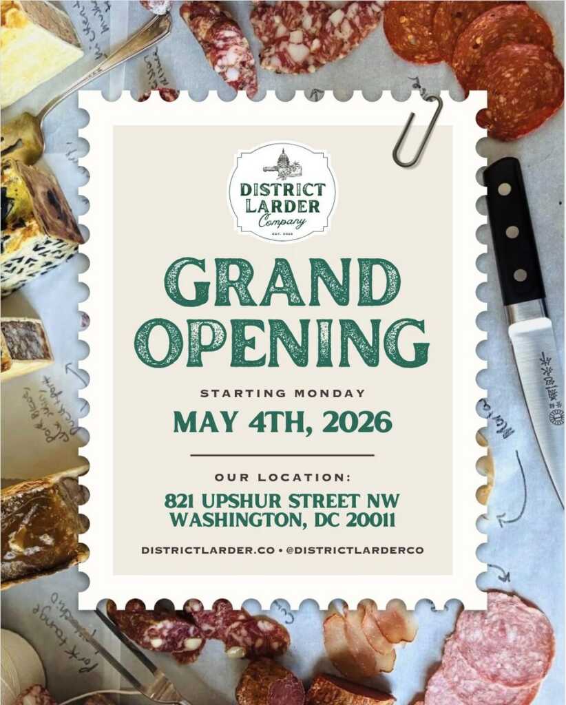 “Neighbors and friends, we’re thrilled to share that District Larder Co. is opening on May 4th, 2026!