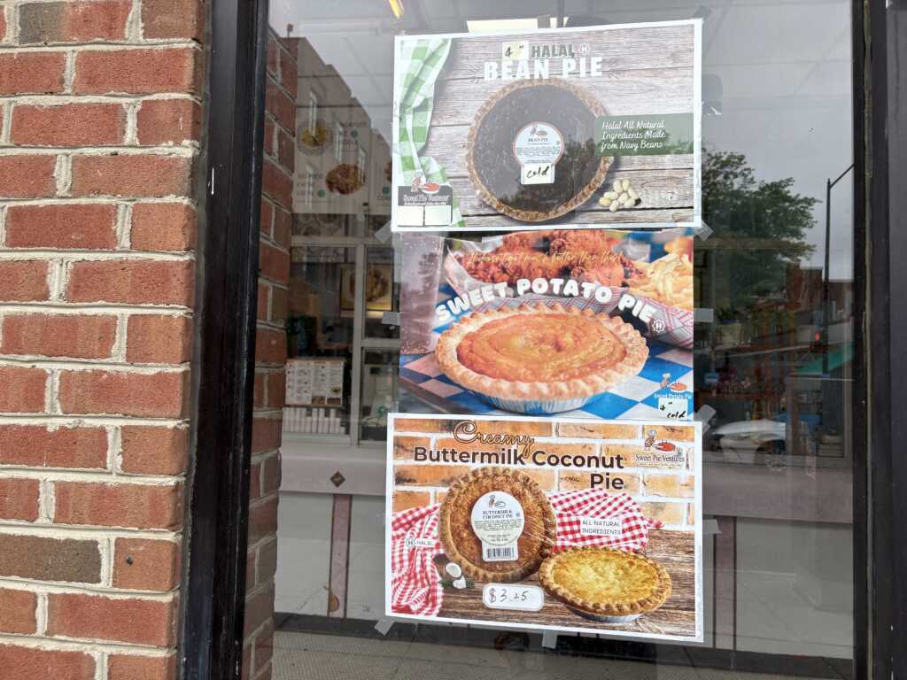 Halal Bean Pie, Sweet Potato Pie, and Creamy Buttermilk Coconut Pie.