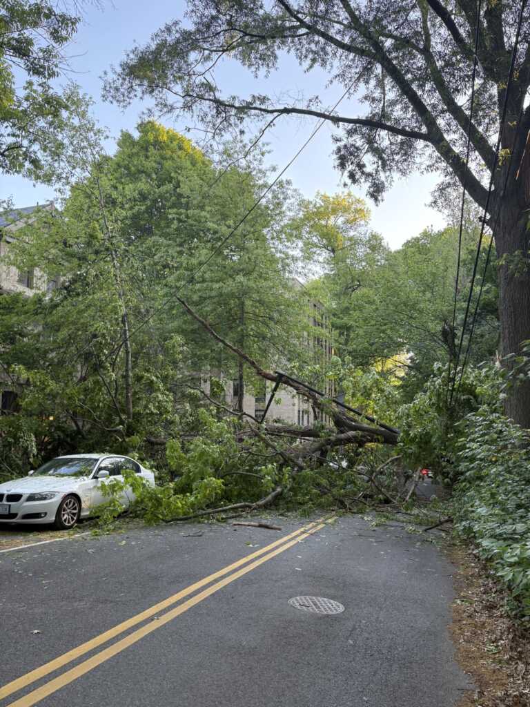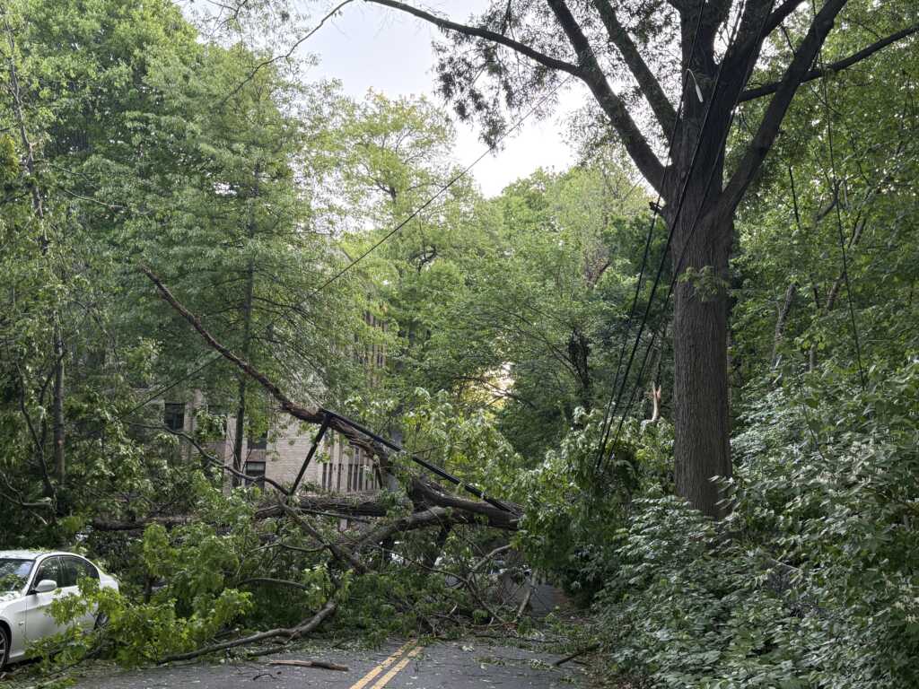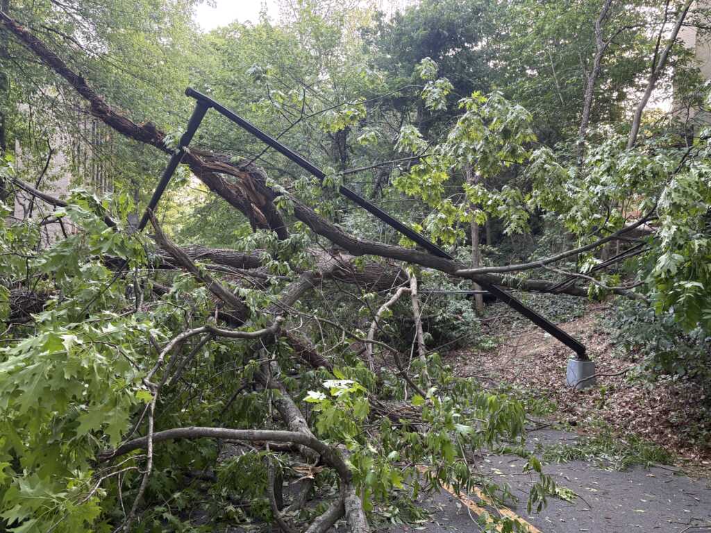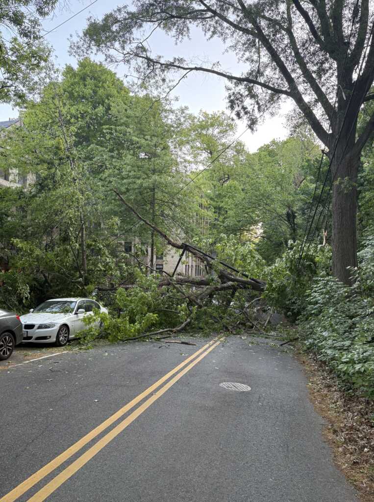 “Huge tree down on Adams Mill Rd next to Rock Creek”