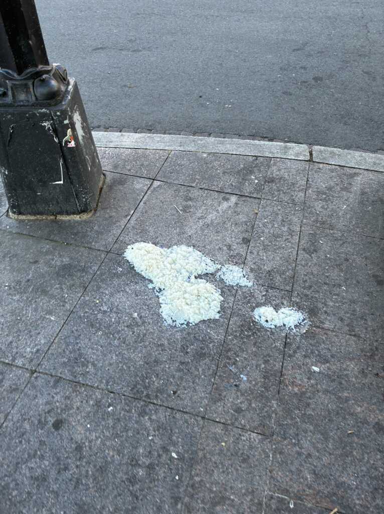 We are experiencing a mysterious issue in my neighborhood. For the handful of years I’ve lived on this specific block, I’ve seen food mysteriously appear on the sidewalk anywhere from once to twice a week. It usually appears to be