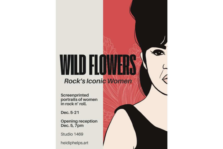 Step into a vibrant tribute to the women who shaped rock music’s past, present, and future. Wild Flowers: Rock’s Iconic Women is a new solo exhibition by Washington, DC–based artist Heidi Phelps, celebrating legendary musicians through a bold, feminist lens. Each screen-printed portrait pairs an iconic artist with a symbolic flower—an interplay of music history, mythology, and personal strength. The result is a powerful garden of sound and symbolism, rendered in lush, hand-printed color.