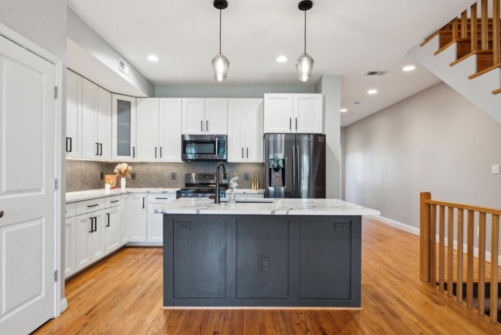 - “Come home to this 3 bedroom, 3 bath rowhome, completely remodeled in 2018! You’ll walk into an open, airy living space with a gourmet kitchen. Off the kitchen, a beautiful fully permitted deck, constructed in 2021, is perfect for hosting, grilling, or simply relaxing in your private outdoor space.”