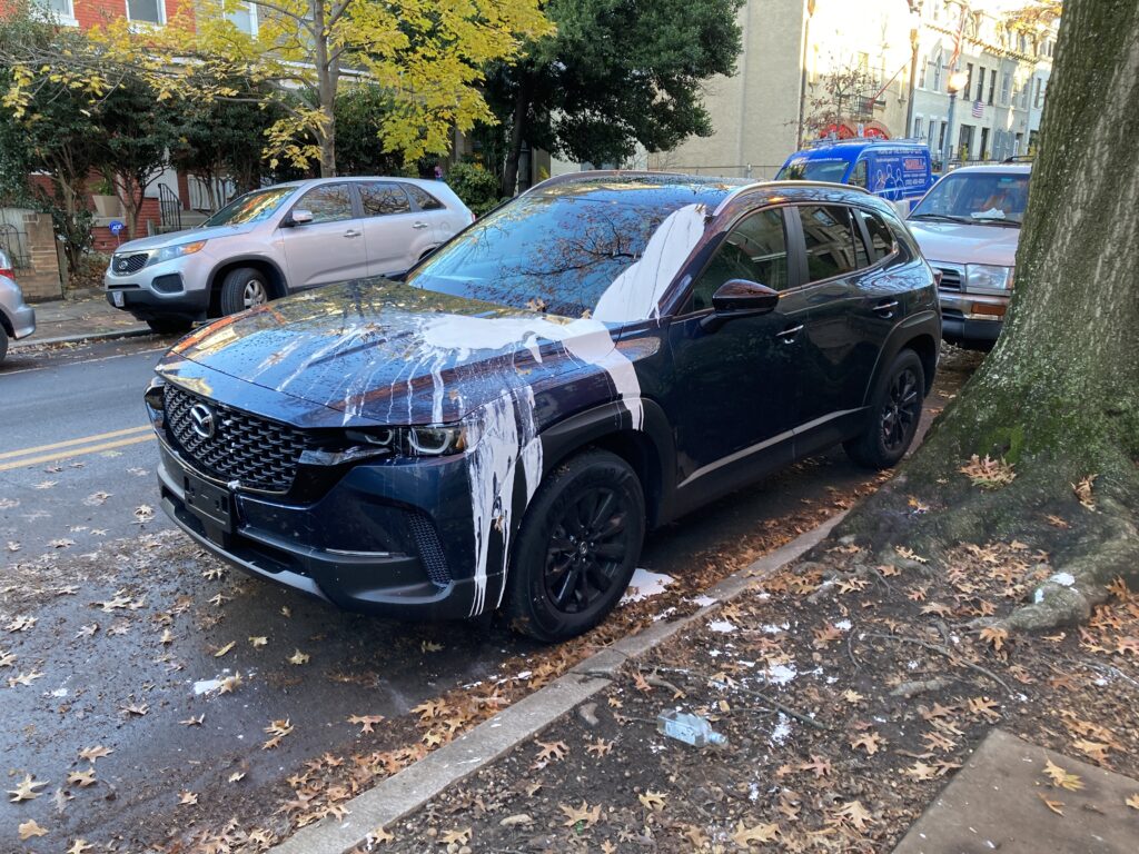 Thanks to Ron for sending from Lanier Heights: “Gallon paint can on the sidewalk is not in the shot.”