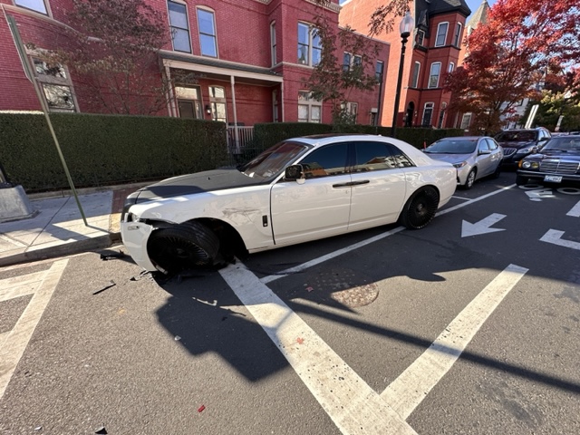 Thanks to Jay for sending: “What a way to walk up? This seemingly abandoned luxury car in Shaw has seen better days. And they got a ticket too!” (more…)