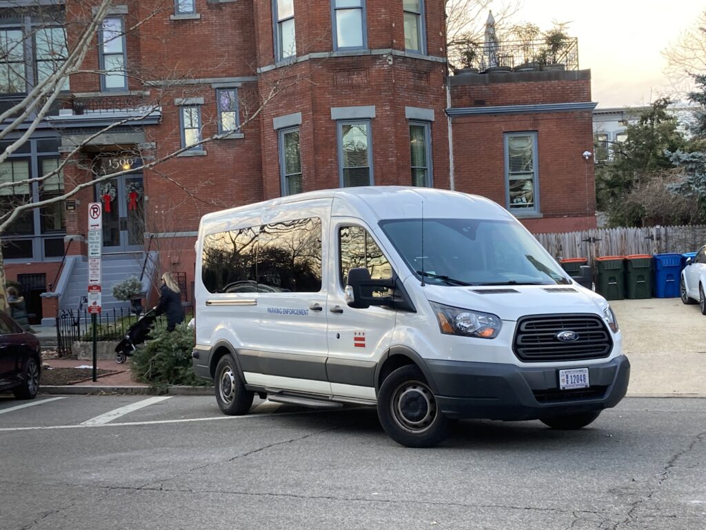 Thanks to Katie for sending: “I see the new extended/protected curbs aren’t going to last long. (these “gentle giants” crushed them all on 11th and V NW)”