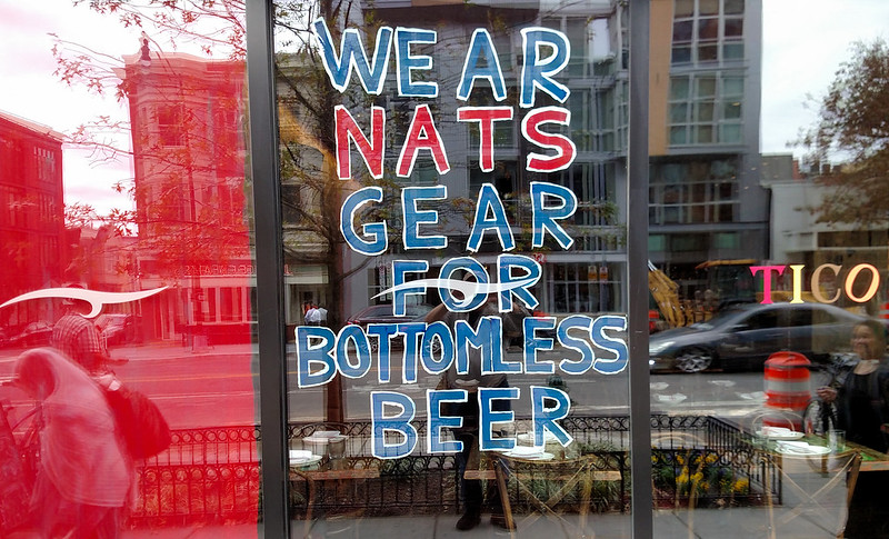 Now that the Nats won, and I’ve finally recovered – I’m ready to get wrecked again!! Come celebrate 13 years of PoPville at Moreland’s Tavern (upstairs) Thursday night starting around 6/6:30pm at 14th/Kennedy and Colorado Ave, NW. Unfortunately our DJ got hurt in a cycling crash (feel better Eric!!), he’ll be ok but is out of commission for a bit so maybe I’ll freestyle: