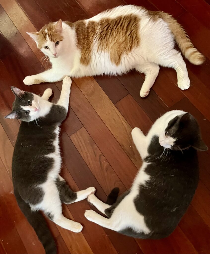 “Brothers Zipper and Zoomer in McLean Gardens, one day after celebrating their 15th birthday”