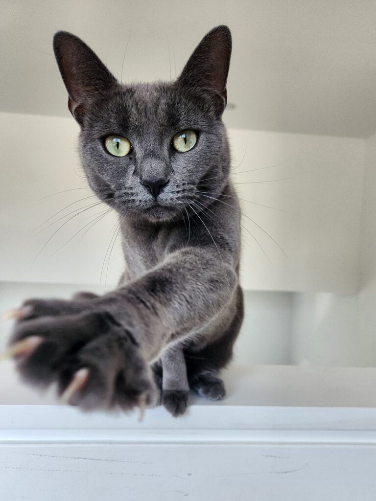 This tuxedo queen has excellent litter box manners, a healthy appetite, and knows exactly where to sharpen her claws (hint: it’s the scratching post, not your furniture)! Mama Tuxington also has a soft spot for humans-she’ll happily cuddle up next to you for a Netflix binge or a lazy afternoon nap.