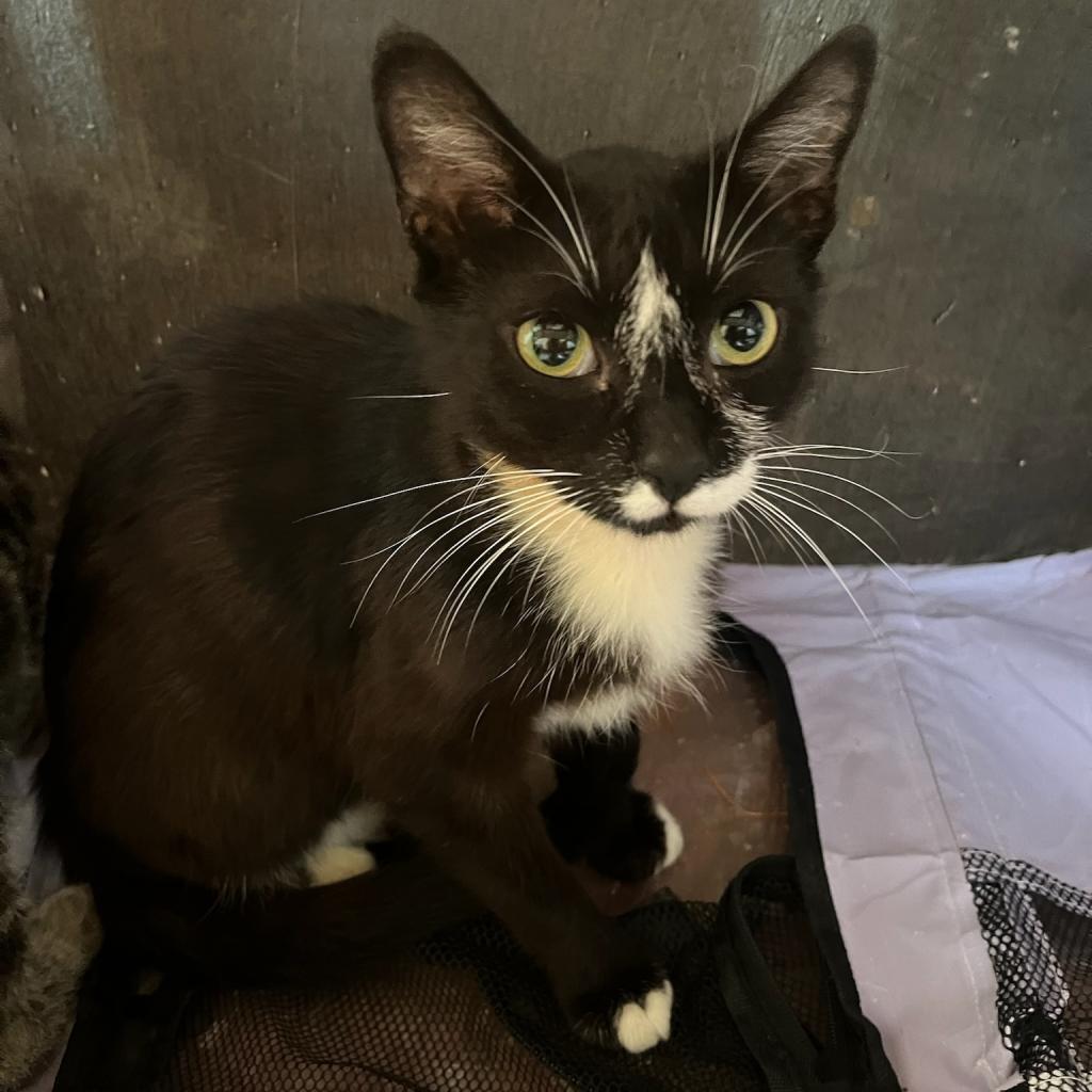 Mama Tuxington is a social butterfly who’s thriving in her foster home with multiple cat companions. She’s a playful explorer, always ready for a good romp with her furry friends or a solo session with her favorite toys-especially anything stuffed with catnip!