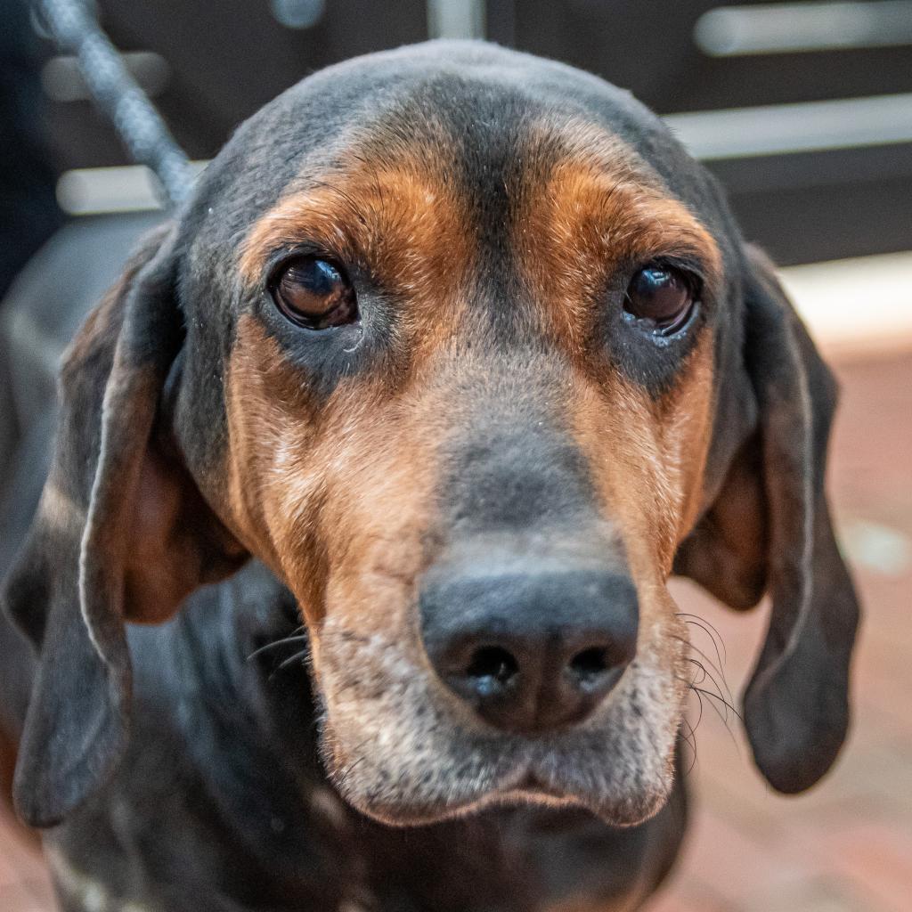 Eleanor is a 6-year-old, 53-pound Black and Tan Coonhound mama with a heart full of love and a playful, gentle spirit. She’s a pro at snuggling, loves playing with her doggy friends, and can’t resist a good toy.