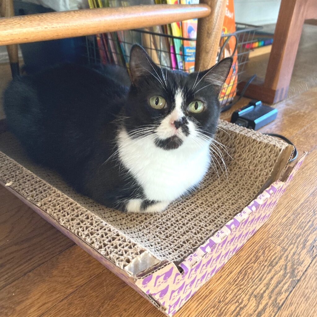 Whiskers is a 1-year-old DSH with a calm, friendly, and gentle personality—and a fabulous face to match! She’s sociable and loves attention, happily making herself available for pets.