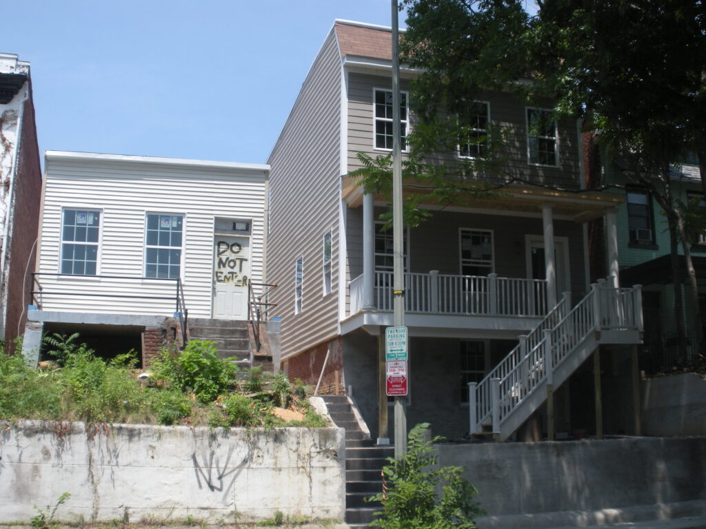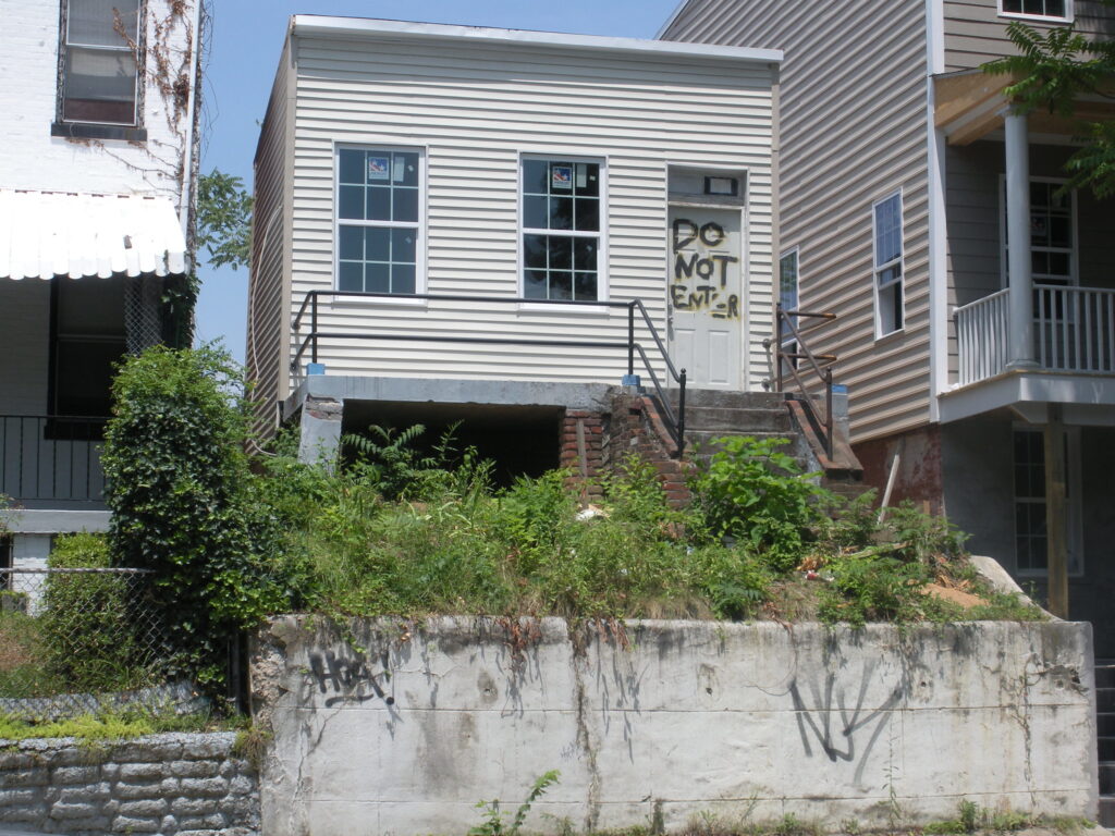 The shells on the 600 Block of Irving Street, NW are getting fixed up. There were some wild looking ones not too long ago. The house on the right looks pretty good. But I’m totally confused by the house on the left. It is only one story and does not go back very far. What’s the deal with the one on the left?