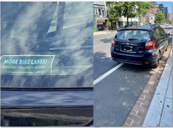 Thanks to John for sending: “Unattended vehicle parked in bike lane on 14th Street on Wednesday.”