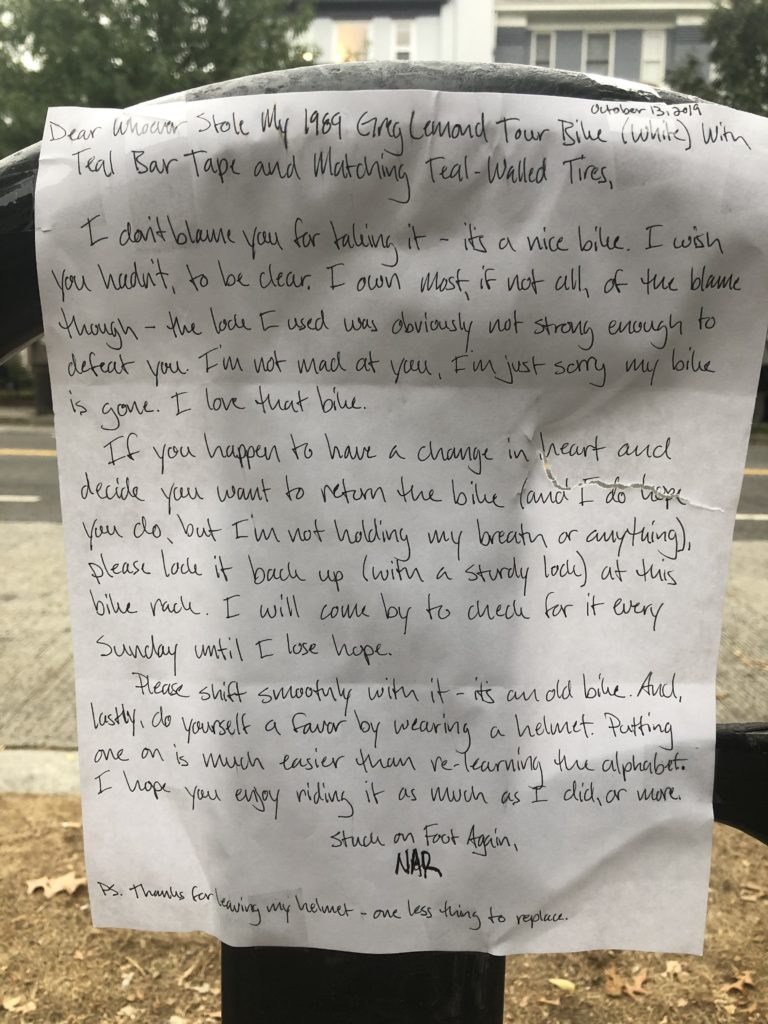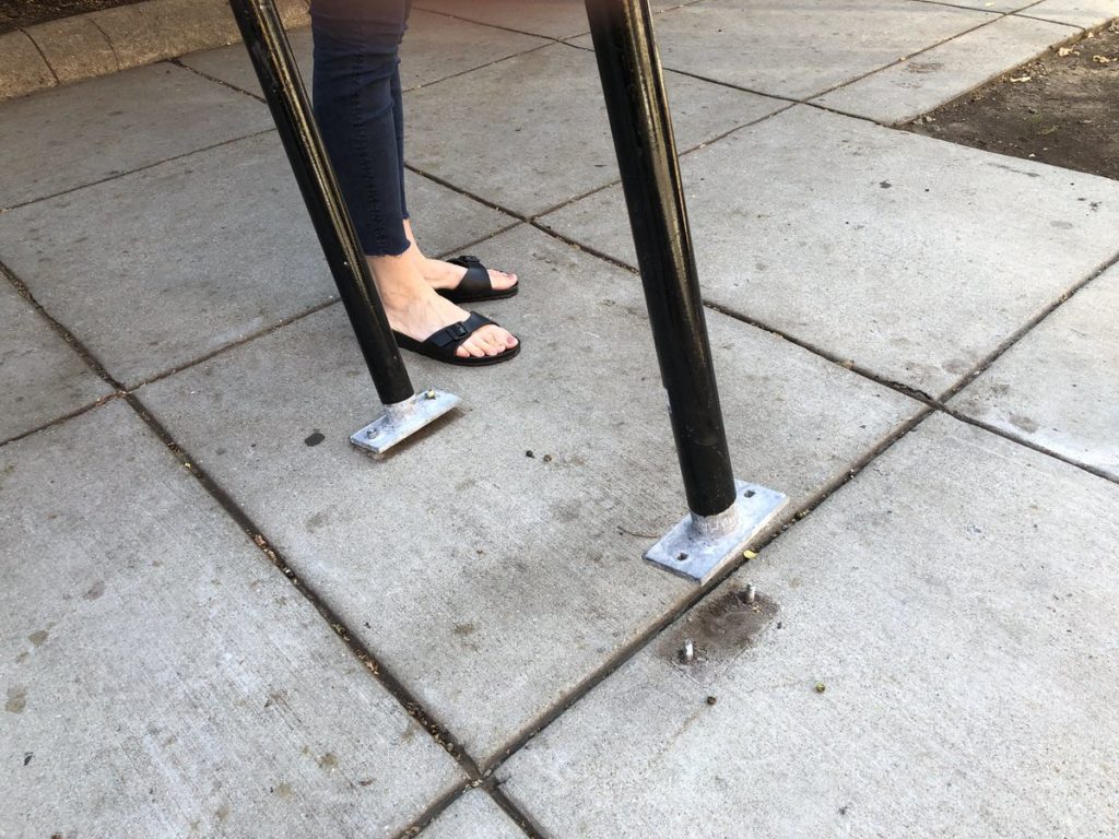 Thanks to Kevin for sending the warning: “bike was stolen last night [Friday], looks like thief was easily able to remove the entire bike rack from the sidewalk – beware people, check your bike racks before you lock up!!”