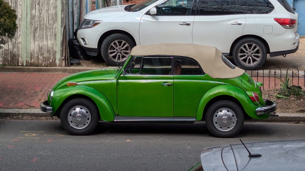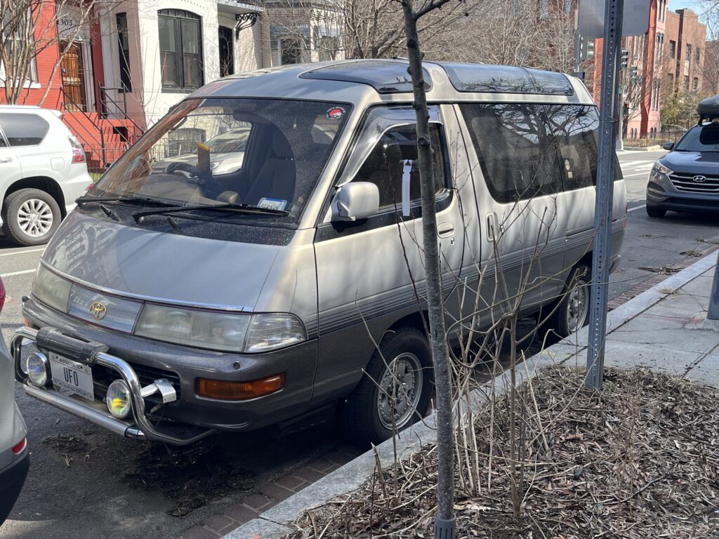 Thanks to Beth for sending: “After being MIA most of the winter, I spotted this sweet ride – but not its twin. Not sure what piques my curiosity – the curtains, the ‘wrong side’ steering wheel or the fact that there are usually two of them. Would love to know more…”