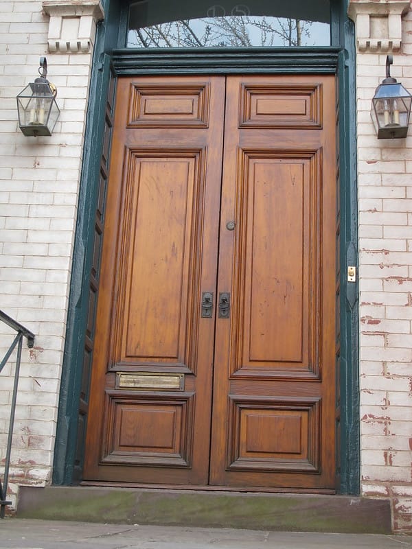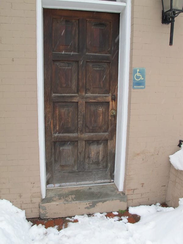 The door is a nice old wood door but I’m posting it because I just don’t see how it is wheelchair accessible with a big step there…