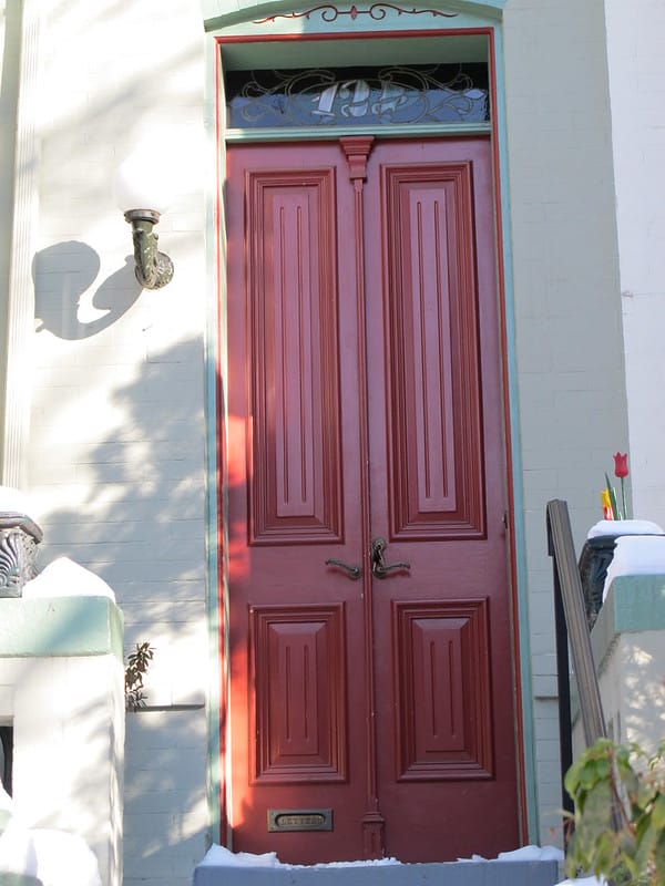 This classic from Adams Morgan is one of the best because you can see the actually knocker part also has a face on it.