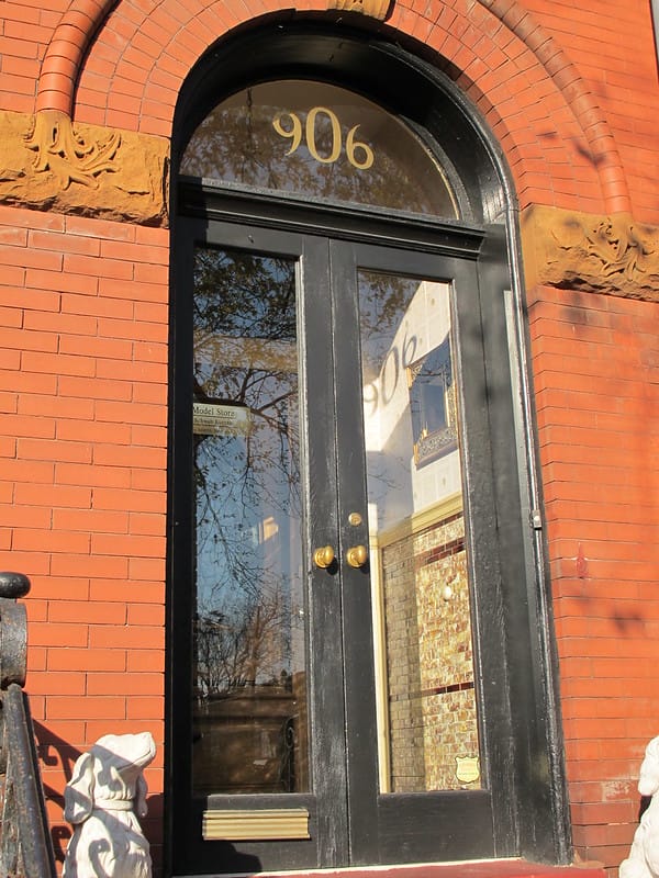 “I found this door (I think) the day the owners were installing it, or at least doing some work on it. It is just off of Logan. I realized just now looking at the picture that the the door to the left is not too shabby either though it was the door at 1519 that really caught my attention.”