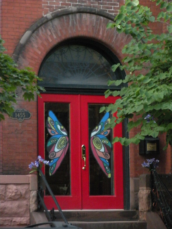 Some great stained glass house numbers in the transom (just learned that word…). I also dig the big glass section which likely leads to a sweet vestibule.