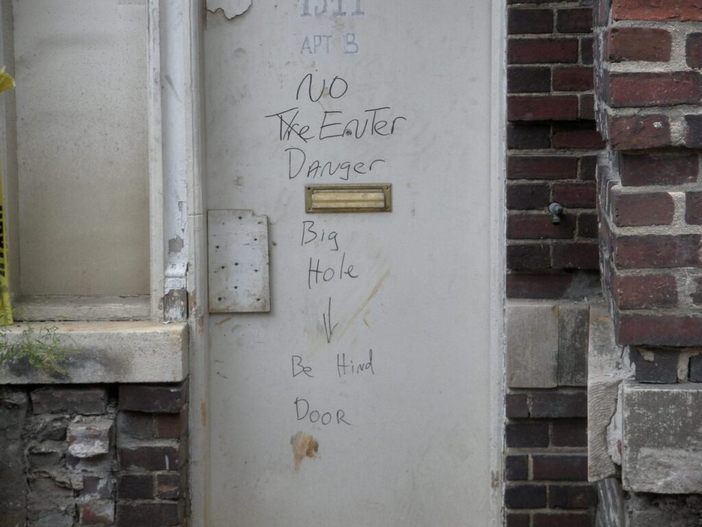 I was drawn by the security bars at first but what I found to be the coolest was that this door actually opened onto a courtyard. Pretty sweet door for a courtyard…