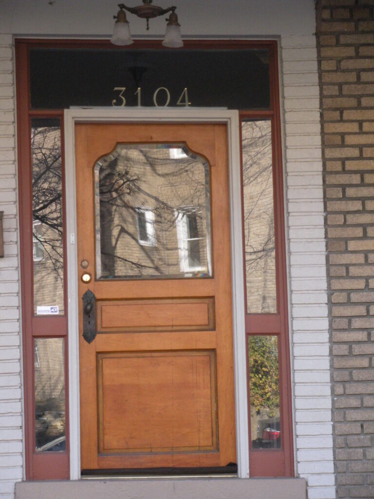 While I do really like this door, I have to admit I just like the way this photo came out with the reflection of the house across the street in the glass…