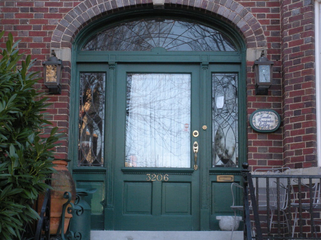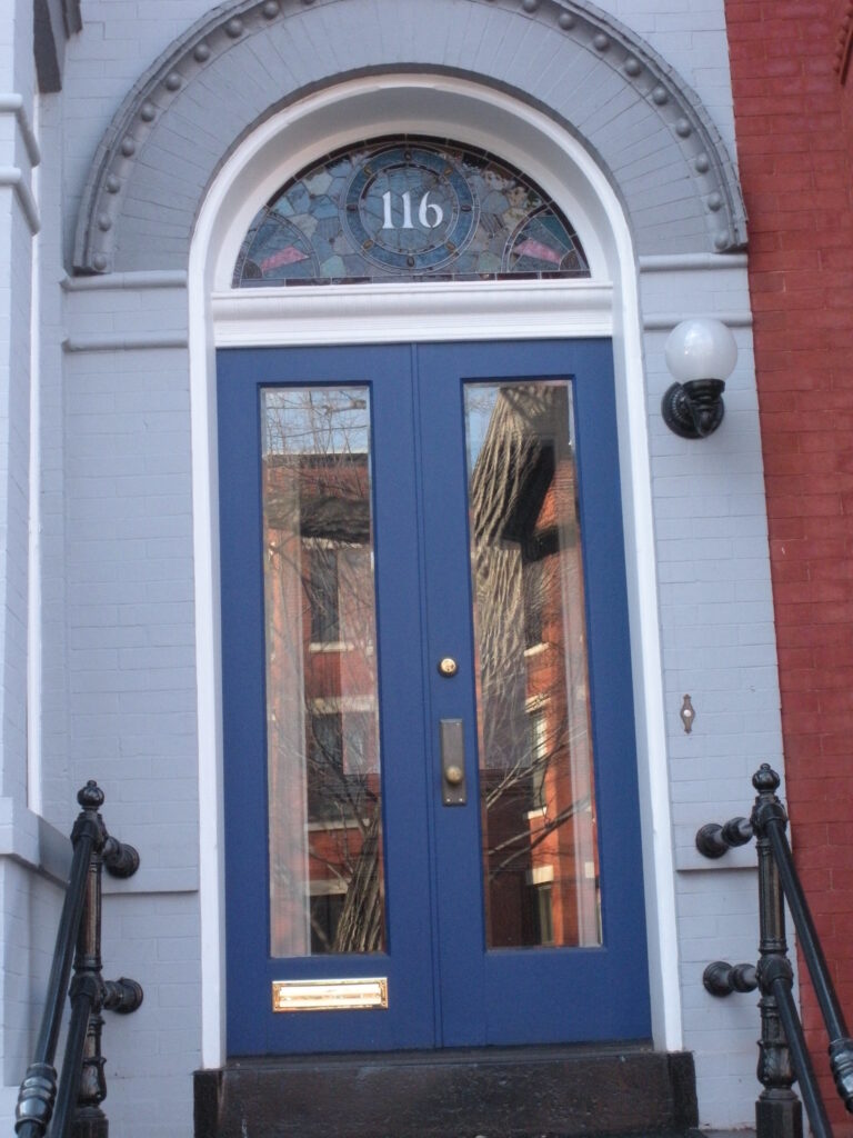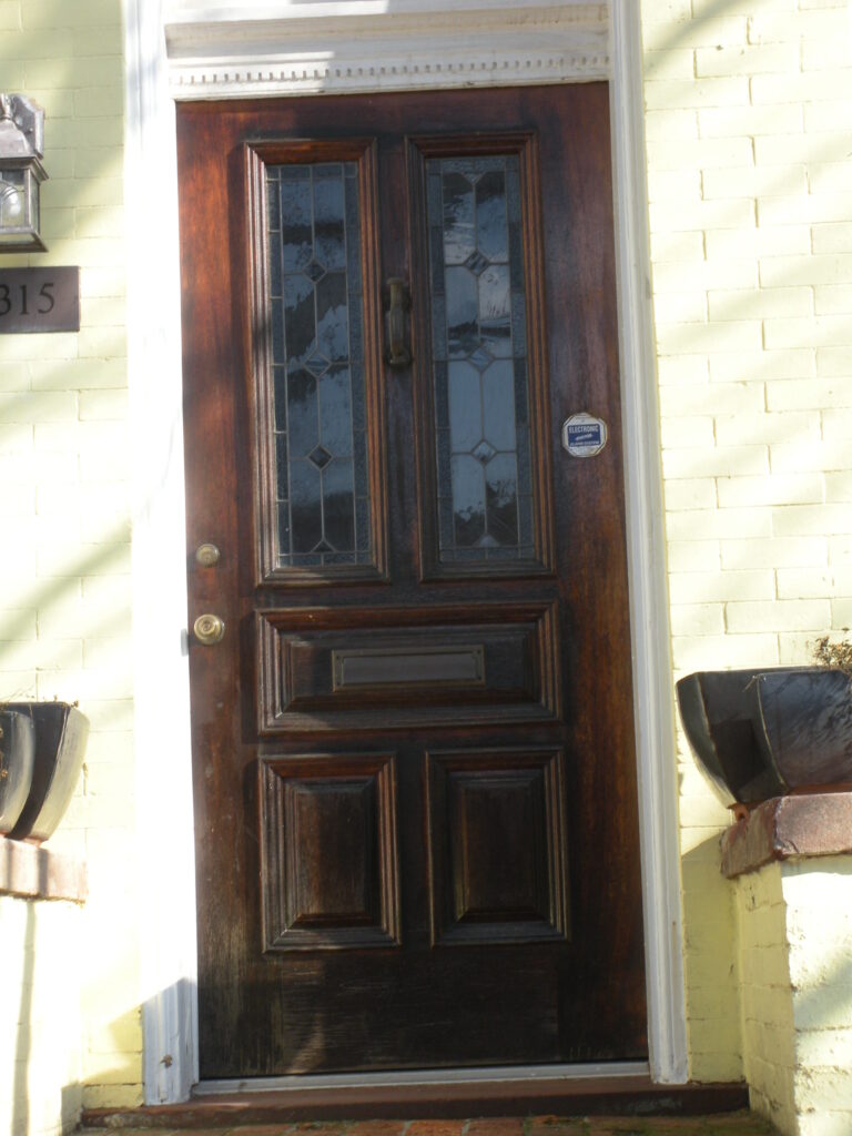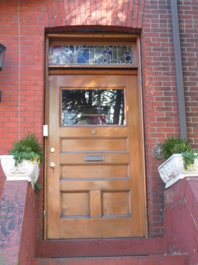 I can’t decide if I’m a fan of the glass on the door but the stained glass up top is right on.