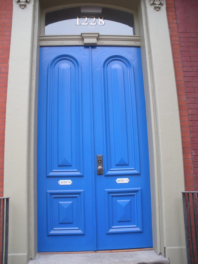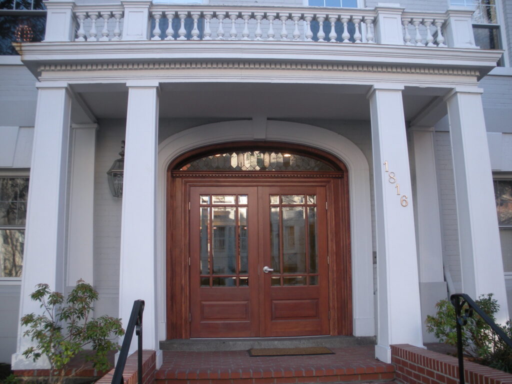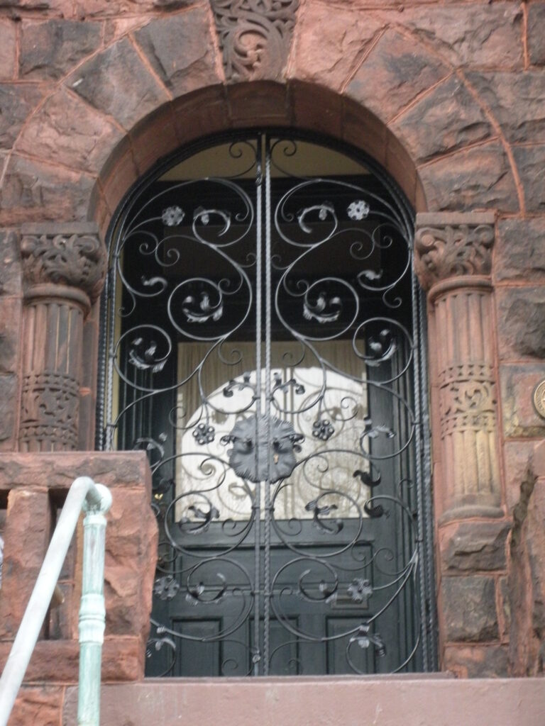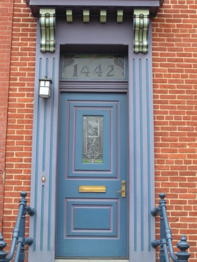 I can’t decide if I’m a fan of the glass on the door but the stained glass up top is right on.