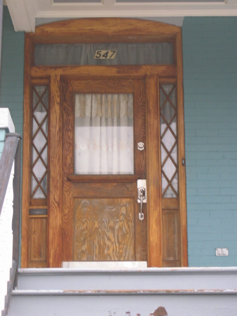 I never realized but this one has a mail slot by the floor as well. I see there is a newer mailbox to the left but why do you think originally they put the mail slots so far down on the door?