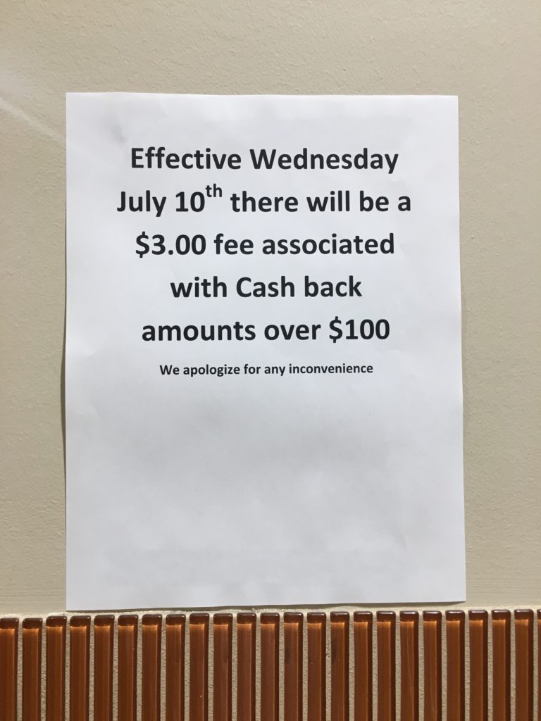 One reader writes: “Looks like Harris Teeter in Adams Morgan is charging a new fee for large cash back transactions.”