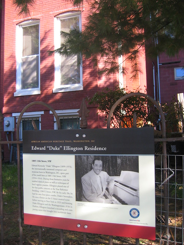 Apparently I’ve been walking by Duke Ellington’s childhood home almost everyday and didn’t even know it. I think it is the 1800 block of 13th Street.