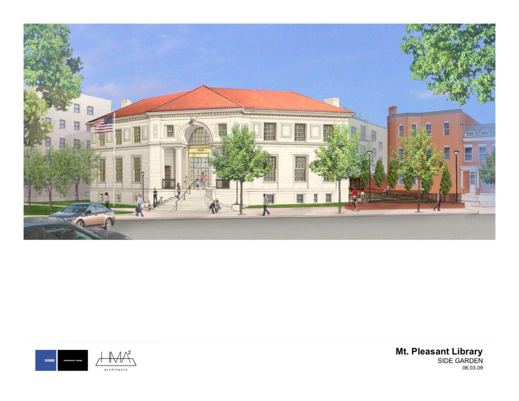 View photos and site designs of Mount Pleasant Library. The DC Public Library is seeking request for proposals for construction services for the new Mt. Pleasant Library.”