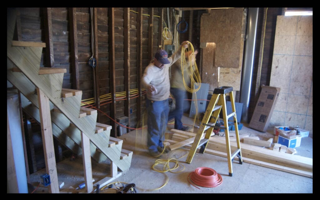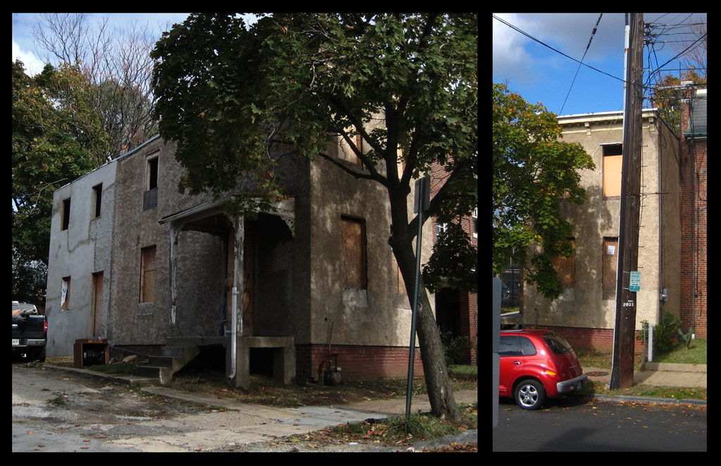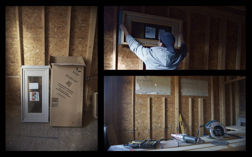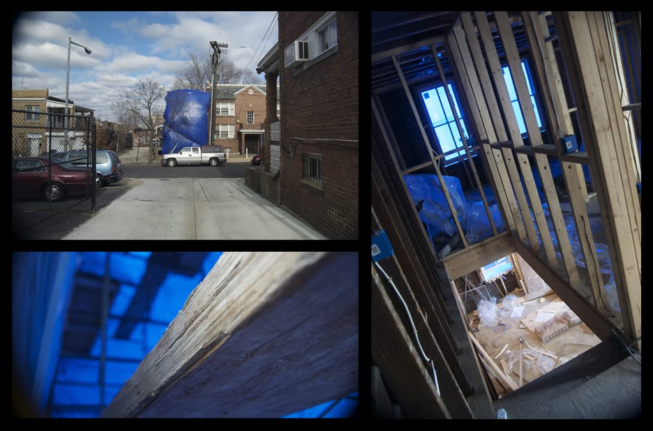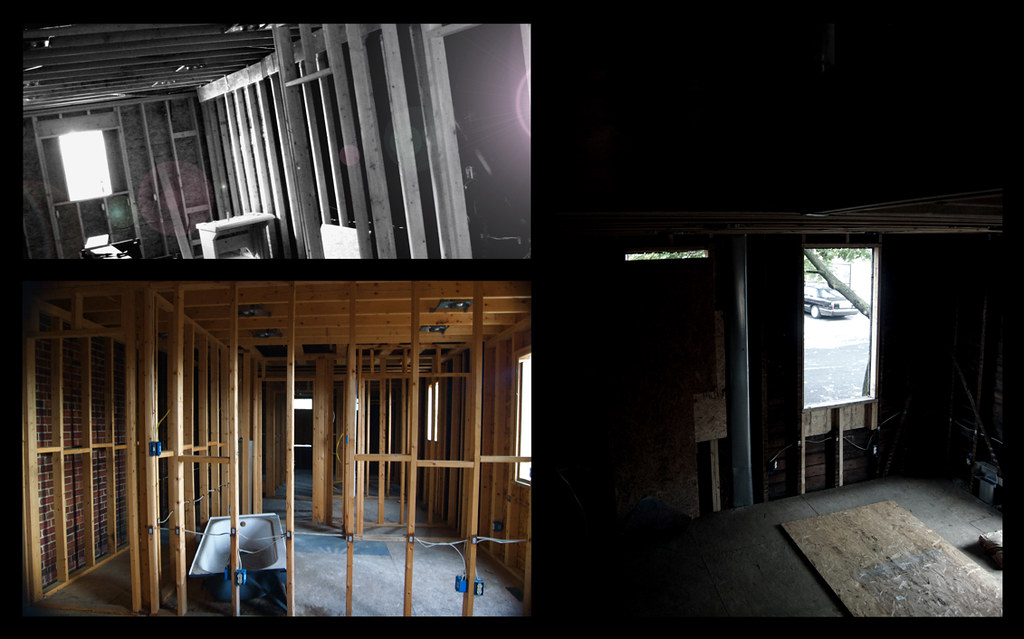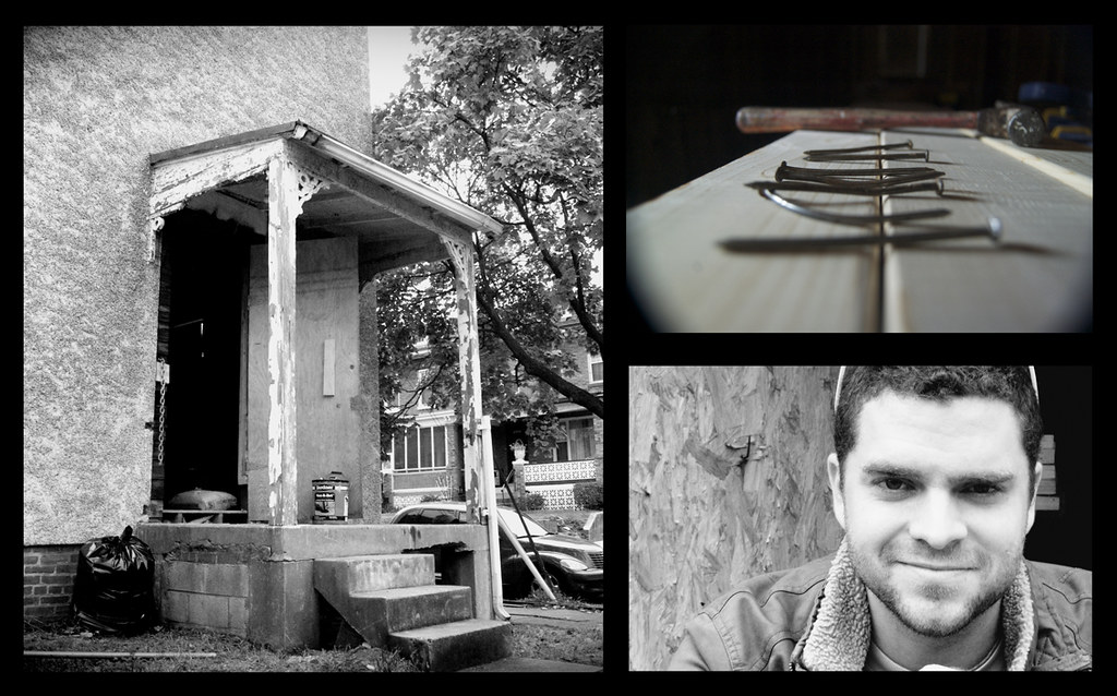 clockwise from left: the front porch (actually on the side) is looking pretty sad; the tools of the trade; David Garber, house flipper