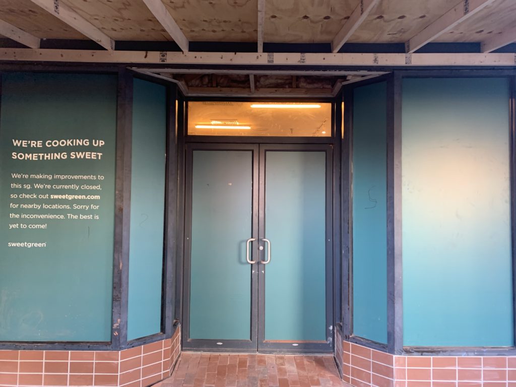 Thanks to Ian for sending the update: “Looks like they’re taking down the giant wood facade and going with on-brand papered window, but it’s certainly progress!! Also. wondering if we’re getting a “Sweetgreen 3.0” makeover at this location. It got panned in its NYC rollout, but could see it being a hit in the must-eat-now crowd of Cap Hill staffers.”