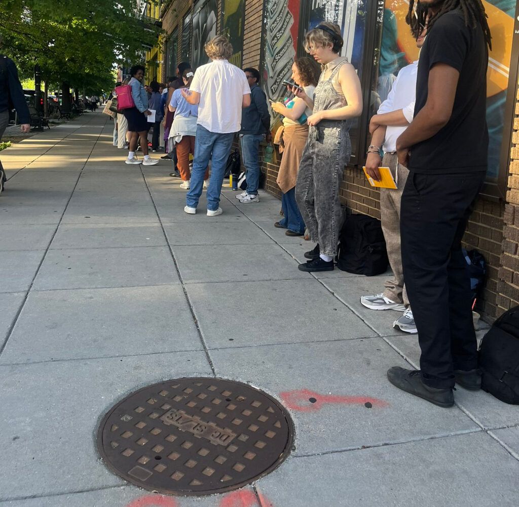 Any idea why there was a line outside studio theater this morning (April 30, 2025)?”