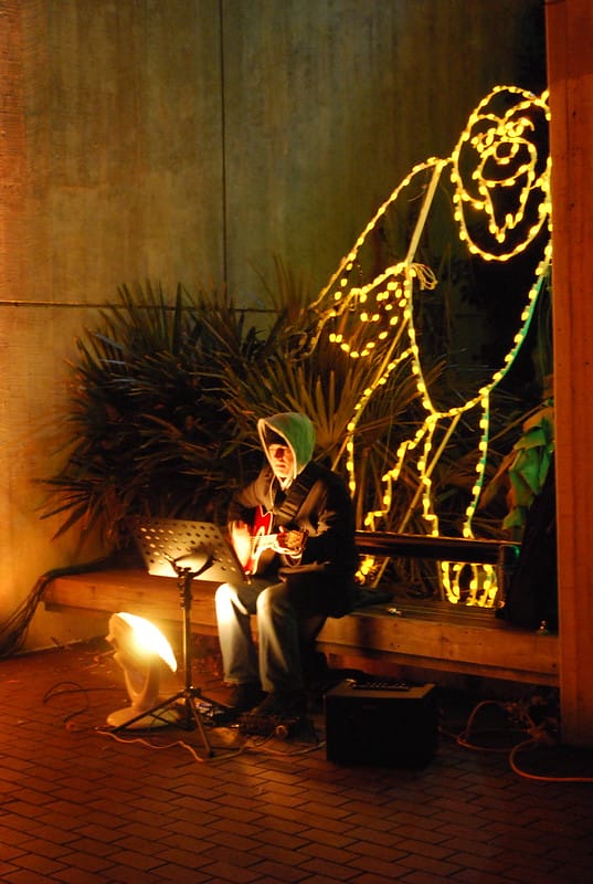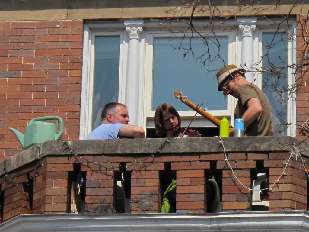 This was a cool scene on Sunday afternoon. All of sudden I started hearing music from a half block away but I couldn’t figure out where it was coming from. Then I looked up.