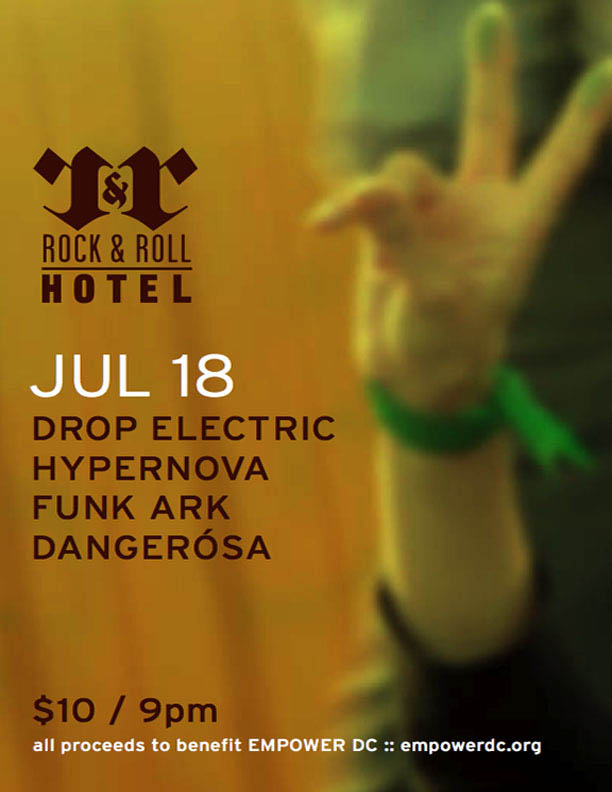 Here is the information for our benefit show this Saturday at the Rock and Roll Hotel. We are playing with Drop Electric and Funk Ark, two great bands from DC, and Hypernova from Iran who have been featured on NPR, Wired, MTV.com, Billboard, New York Times, and many other places. I am pasting the copy from our facebook page for the event below, and it has links for all the bands and a description. Cover is $10.00 and all artist proceeds are going to Empower DC. Empower DC is a nonprofit that works to boost community knowledge and literally empower low and moderate income residents to have a voice in how their cities and neighborhoods are run. http://www.empowerdc.org