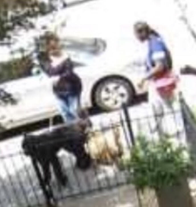 Around noon yesterday at the intersection of 13th and V Street, NW, a male and female were seated on a bench while I was walking home with two dogs. The woman got off the bench and walked out onto the sidewalk between the dogs, and twice said “gimmie [the dogs]”, and she grabbed their leashes. When I pulled the dogs away, she continued to follow me partway down the block until I was able get away and enter my home through the back. Wanted to warn fellow dog parents.”