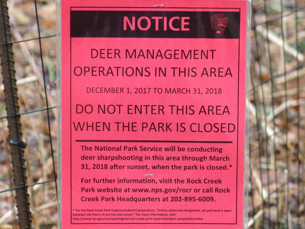 “To protect and restore native plants and promote healthy and diverse forests, Rock Creek Park is announcing its deer management window of operations starting Nov. 20, 2019, through March 31, 2020.