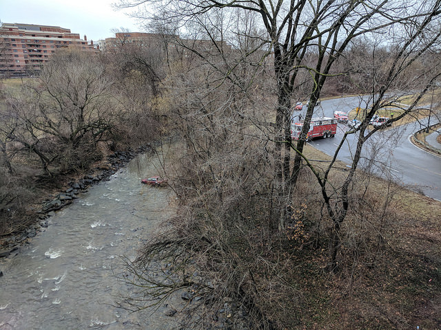 #DCsBravest have safely removed 1 adult male from vehicle into Creek at P St. Victim will be transported with non life threatening injuries. That was the only occupant. pic.twitter.com/GRIj4JFIM6