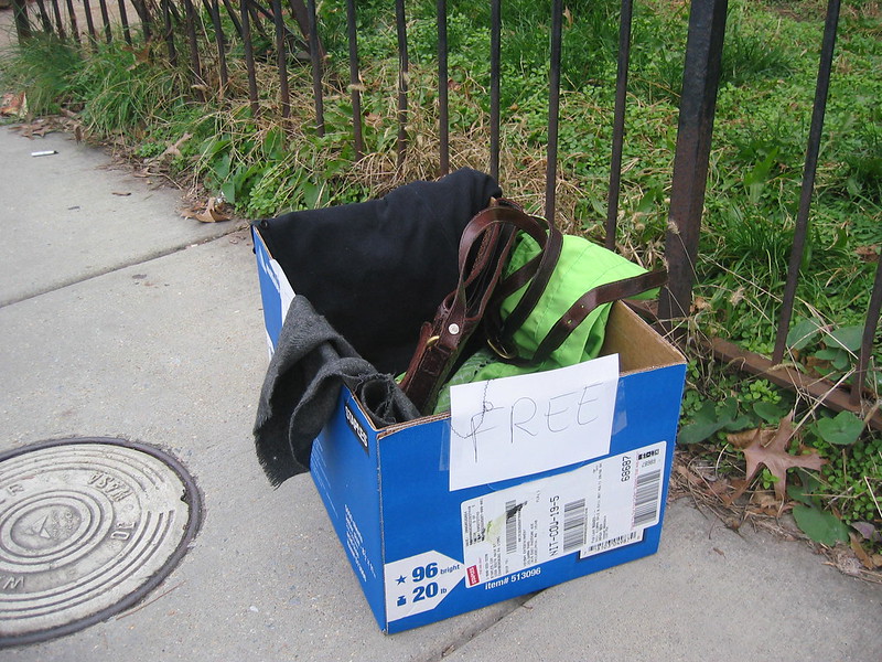 13th Street south of Florida constantly is giving stuff away, mattresses, Yanni dvds, and just plain old boxes full of stuff. I actually just wanted the box but I felt bad about dumping all the goods on the sidewalk so I didn’t end up taking it, sigh.
