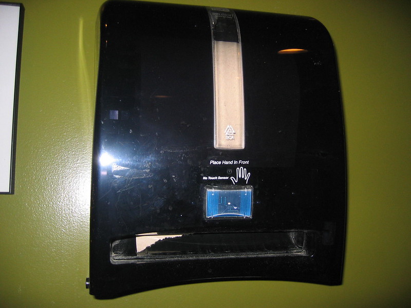 Yes as a matter of fact, I did feel very weird taking this picture but I knew I’d forget the thought if I didn’t. At any rate, I can’t stand these automatic towel dispensers. By the time you get the sensor to work all the water has run down your arm and it is kind of moot at that point. Plus you look like a lunatic waving your hand in front of it trying to get it to register. Am I wrong? I mean how lazy are we any way? Is this a conservation or sanitation thing, what’s the purpose?