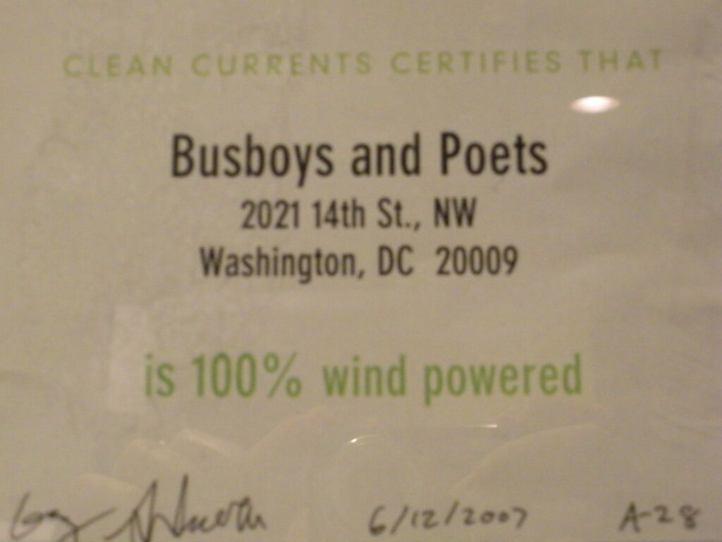 Busboys & Poets is wind powered: